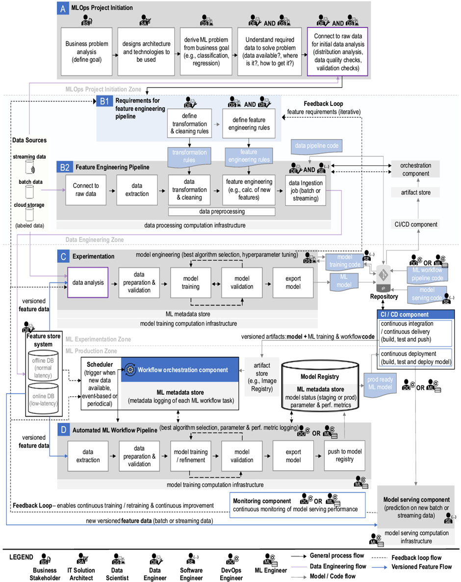 DevOps 엔지니어, ML 엔지니어는 자동화된 ML 워크플로 파이프라인을 관리할 뿐만 아니라, 학습 인프라스트럭처, Kubernetes와 같은 프레임워크의 관리도 수행 합니다.