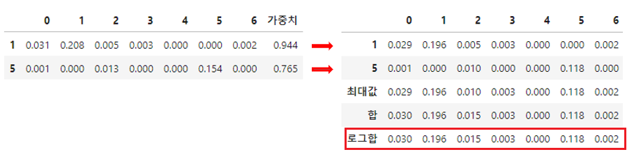 최종적으로 사용한 로그합 방식은 $-\log(1-M_{AB})$ 형태로 로그스케일한 합입니다.