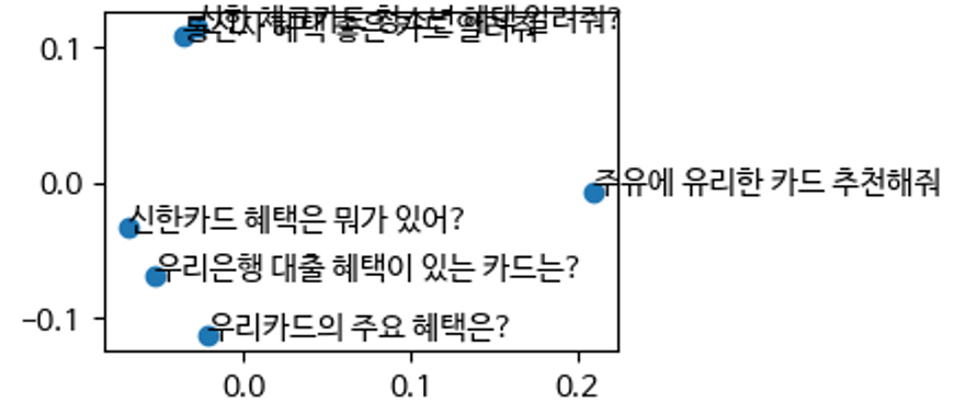문자열을 벡터화하고 벡터 유사도 기반으로 유사 문장을 추출하는 방법이 가장 많이 쓰이곤 있지만, 특히 범용 목적을 가진 모델을 특정 분야에서 사용할 경우 아래 그림과 같이 정밀도가 떨어지는 경우가 많으며, 이는 입력 문장이 약간만 바뀌어도 검색 결과가 크게 바뀌는 결과로 이어집니다.