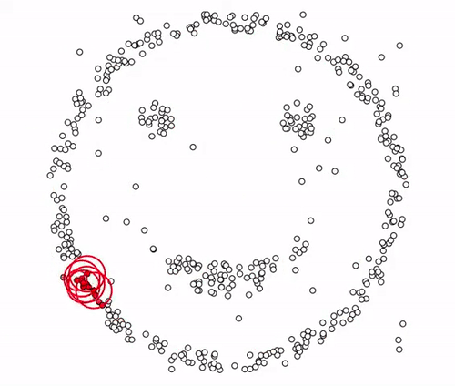 Mean-shift는 어떠한 data의 분포가 있을 때 무게중심을 찾아서, 이동하는 형태로 clustering을 하게 됩니다. 특정 data의 주변에서 data가 가장 밀집된 형태로 이동하게 되며, 단계적으로 data 분포의 중심으로 이동하면서 군집을 이루는 모델입니다.