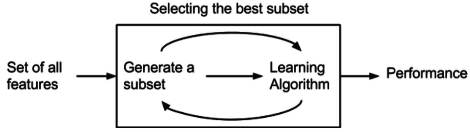Wrapper-based method 는 모델을 사용하여 성능 측면에서 가장 좋은 성능의 feature를 뽑아내는 방법입니다. 다만 모델을 계속 사용하면서 최적의 feature 집합을 찾아가는 방식이기 때문에 시간과 비용이 매우 높게 발생합니다.