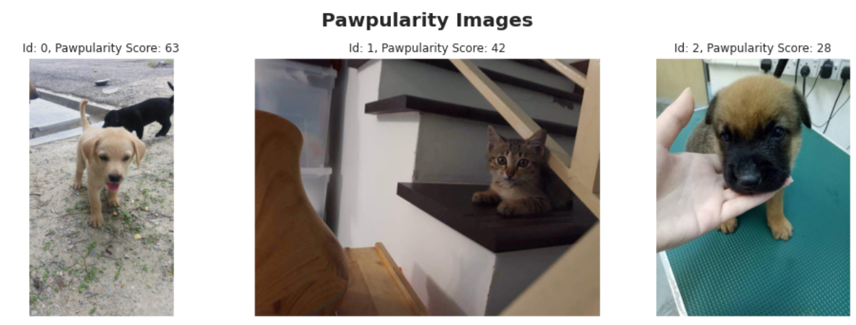 The Pawpularity Score is derived from each pet profile's page view statistics at the listing pages, using an algorithm that normalizes the traffic data across different pages, platforms (web & mobile) and various metrics.