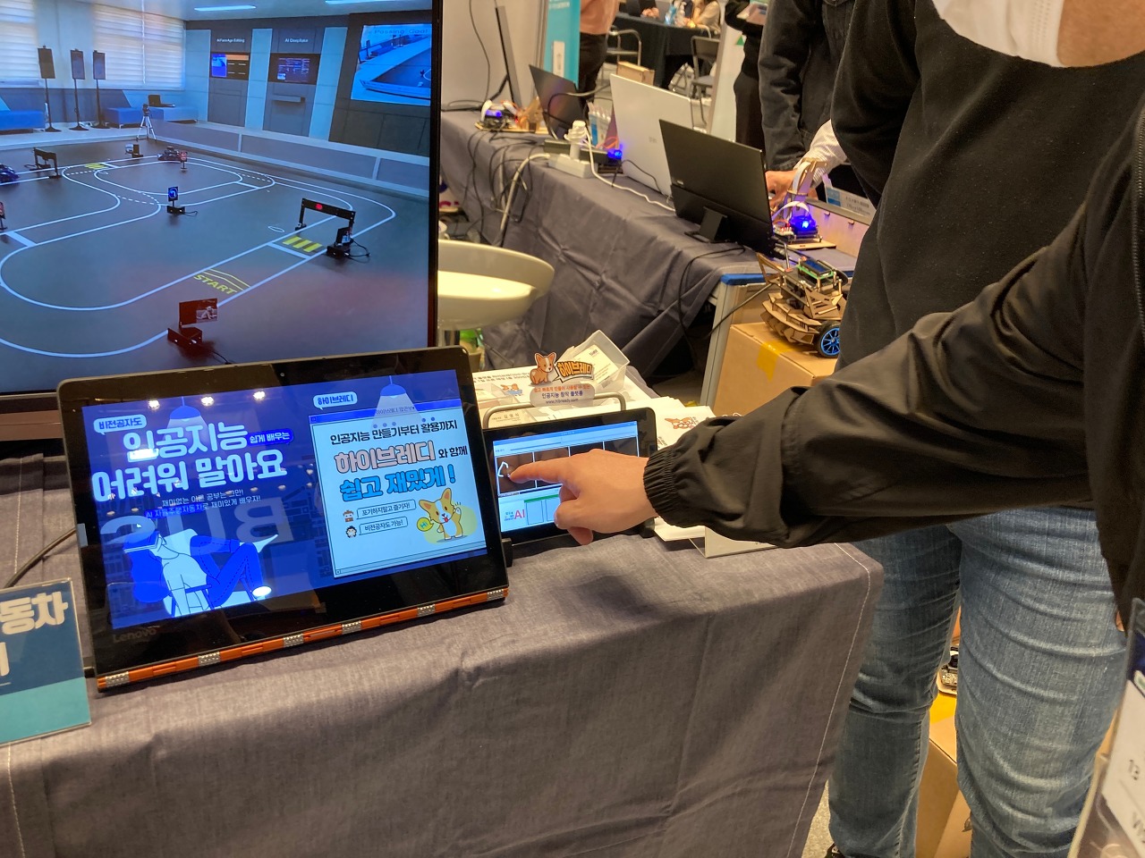 전시가 체험 위주로 되어 있어서 볼거리 즐길거리가 많았고, 앞에가서 서성이고 있으면 기업 관계자분들이 알아서 다 친절히 설명해주셨습니다. (감동) AI 기술에 대해서 무지한 사람들도 쉽게 이해할 수 있도록 정말 기초적인 내용부터 차근차근히 설명해주시는 분들도 있더라구요. 그래서 AI 산업 종사자뿐만 아니라 누구나 가도 즐길 수 있는 행사인 것 같아요.