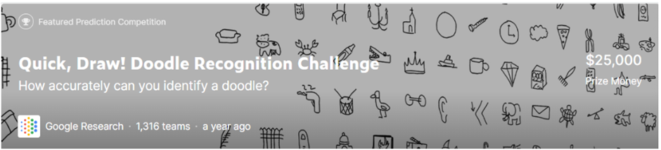 이 대회는 사람이 제한시간 20초 이내에 빨리 그린 낙서들을 분류하는 대회입니다. 직접 관련이 있는 애플리케이션으로는 필기 인식(Handwriting Recognition), 문자 인식(OCR-Optical Character Recognition) 등이 있습니다.