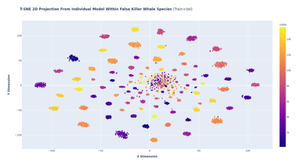이번 대회는 26가지의 종에 해당하는 약 15000가지의 개체를 분류해야 했습니다. 멀리는 1980년대의 과거에 찍은 사진부터 현재까지 찍은 사진들이 섞여 있었기 때문에 시간이 지날 때마다 바뀌는 고래의 피부 색이나 상처에 대해서 robust한 모델을 만드는 것이 중요한 포인트였습니다. 거기에서 끝나지 않고 기관에서 관리하지 않는 새로운 개체를 판단 할 수 있는 모델을 개발하는 문제도 동시에 존재 했습니다.