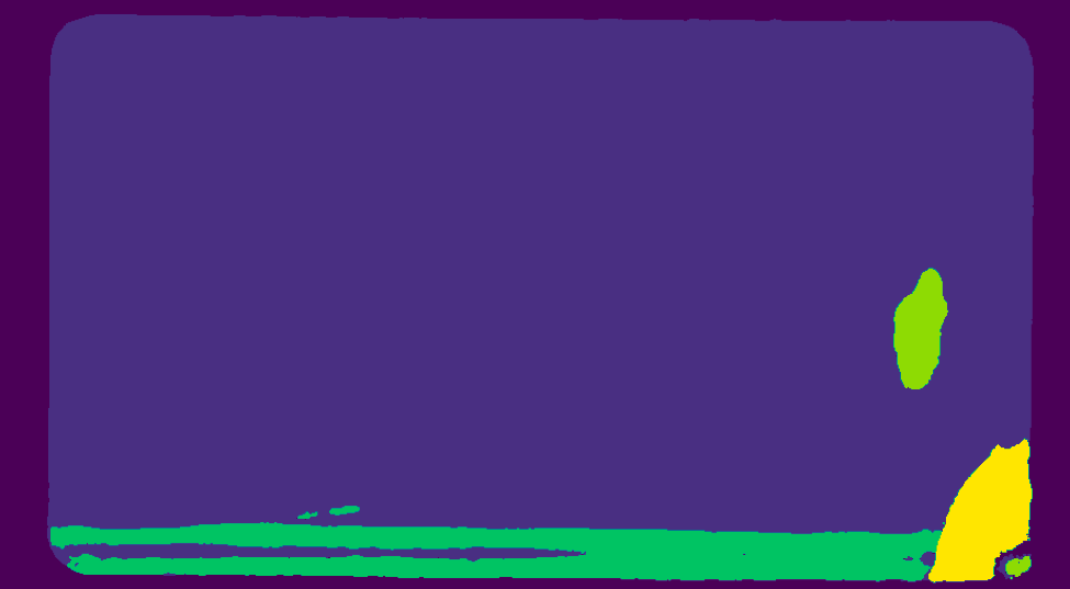 위 이미지와 같이 흑점과 파손이 있는 휴대폰 사진(입력값 X)을 모델에 입력하면, Segmentation 모델은 다음과 같은 output (모델의 출력 Y’) 을 출력하도록 학습합니다.