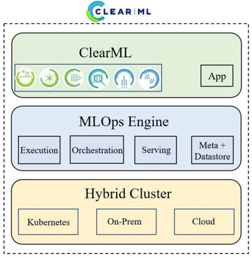 아래 그림은 ClearML의 아키텍처 스택입니다.