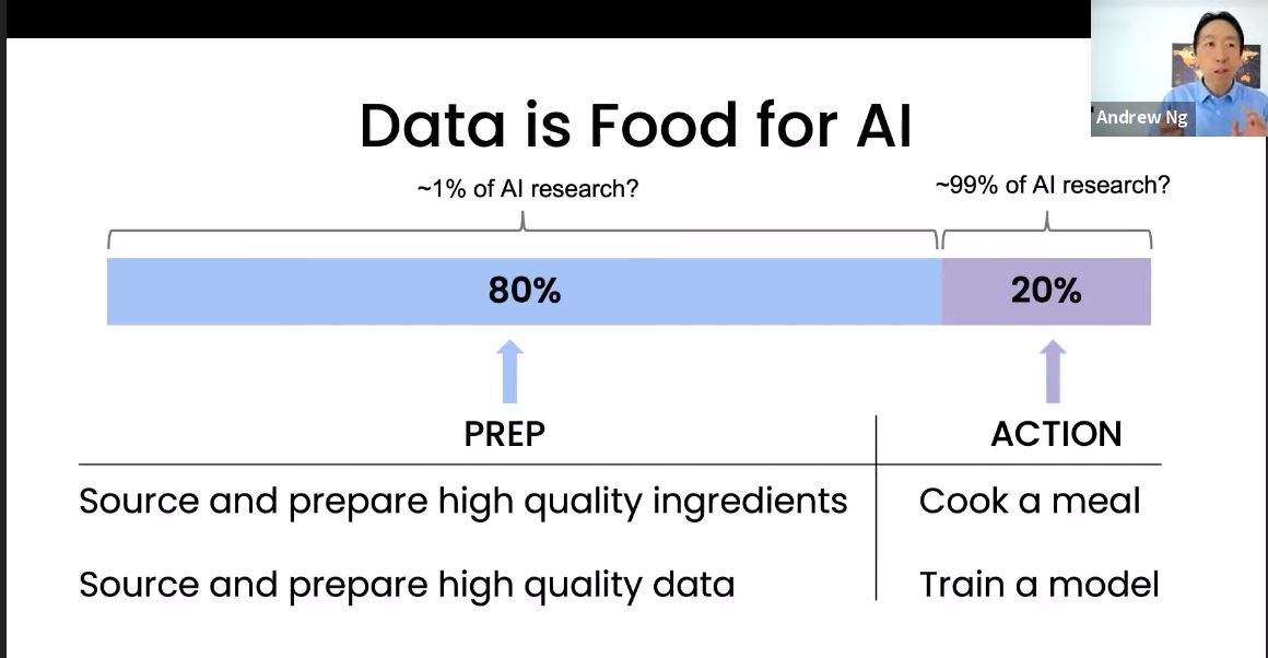 둘 중 어떤 것이 확실히 더 좋다고 말하기는 어렵겠지만, Andrew Ng 교수님은 세미나에서 다양한 예시들을 통해 모델의 코드를 최적화하는 것보다 데이터를 최적화하는 것이 성능 개선에 훨씬 효과적인 경우가 많음을 보여줍니다.