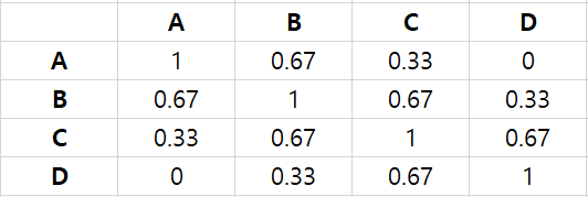 쉽게 말해서, A등급을 B등급으로 틀리는 것이 A등급을 D등급으로 틀리는 것보다 잘 한 것이라고 평가하여 비교적 좋은 스코어를 준다는 의미입니다.