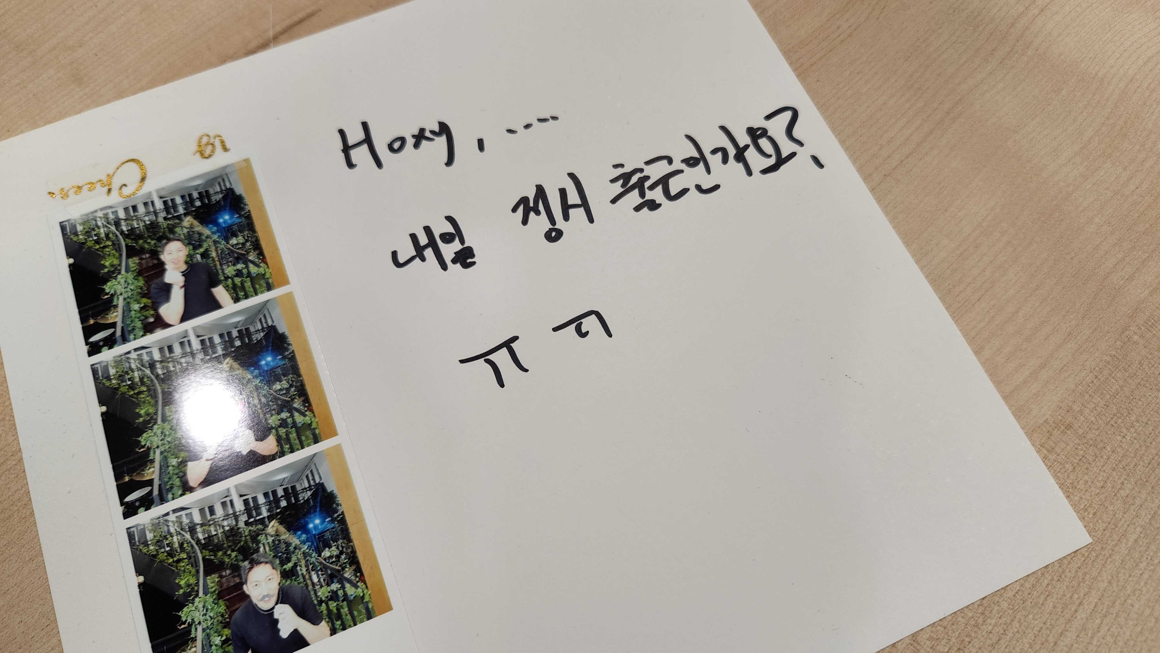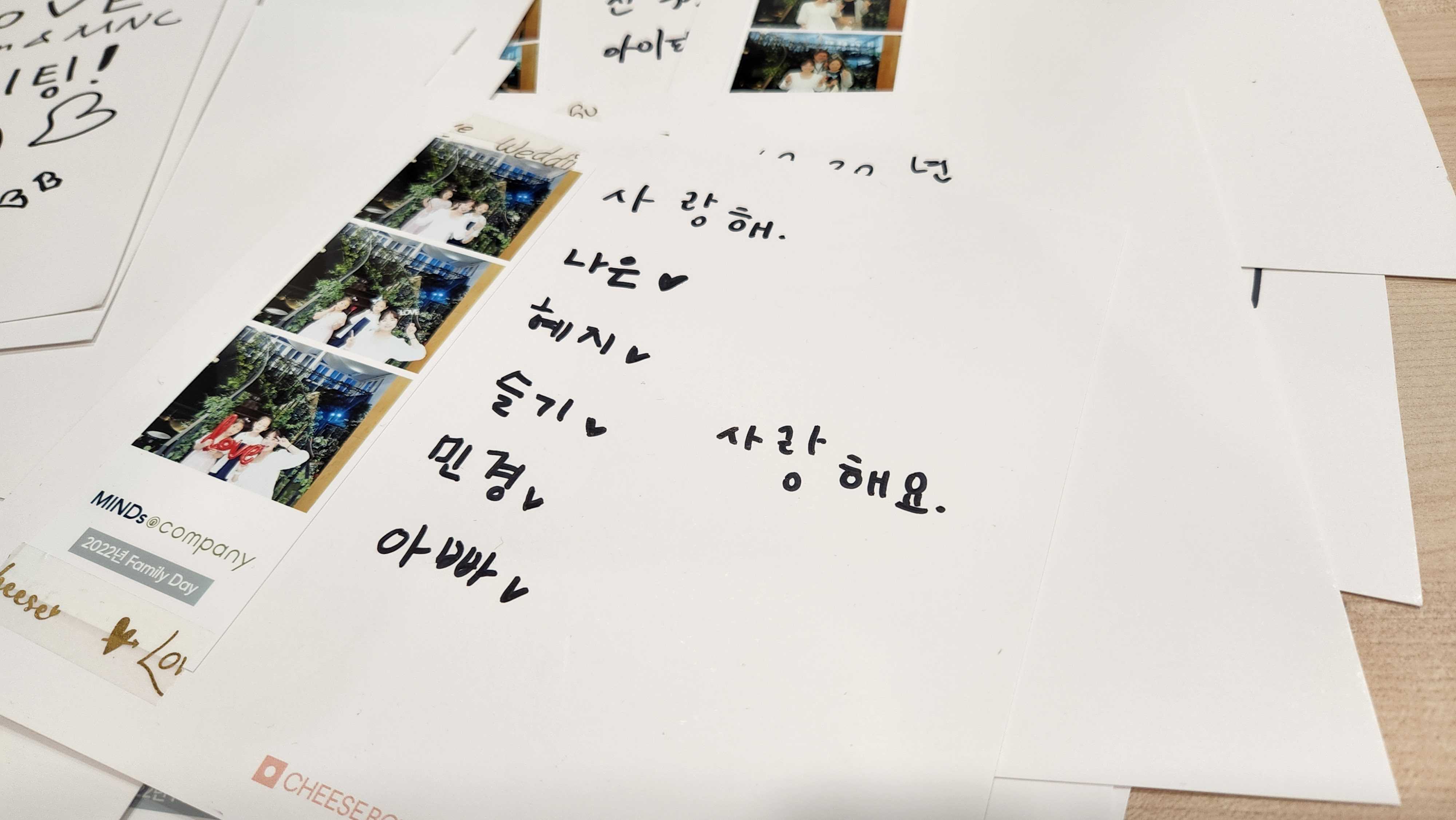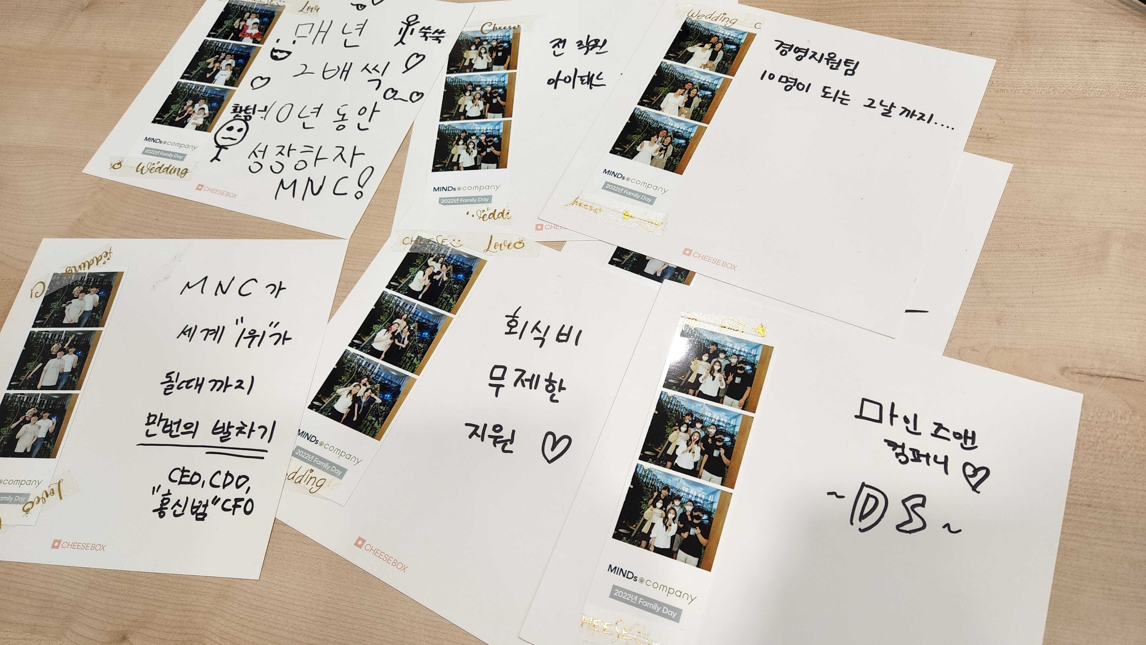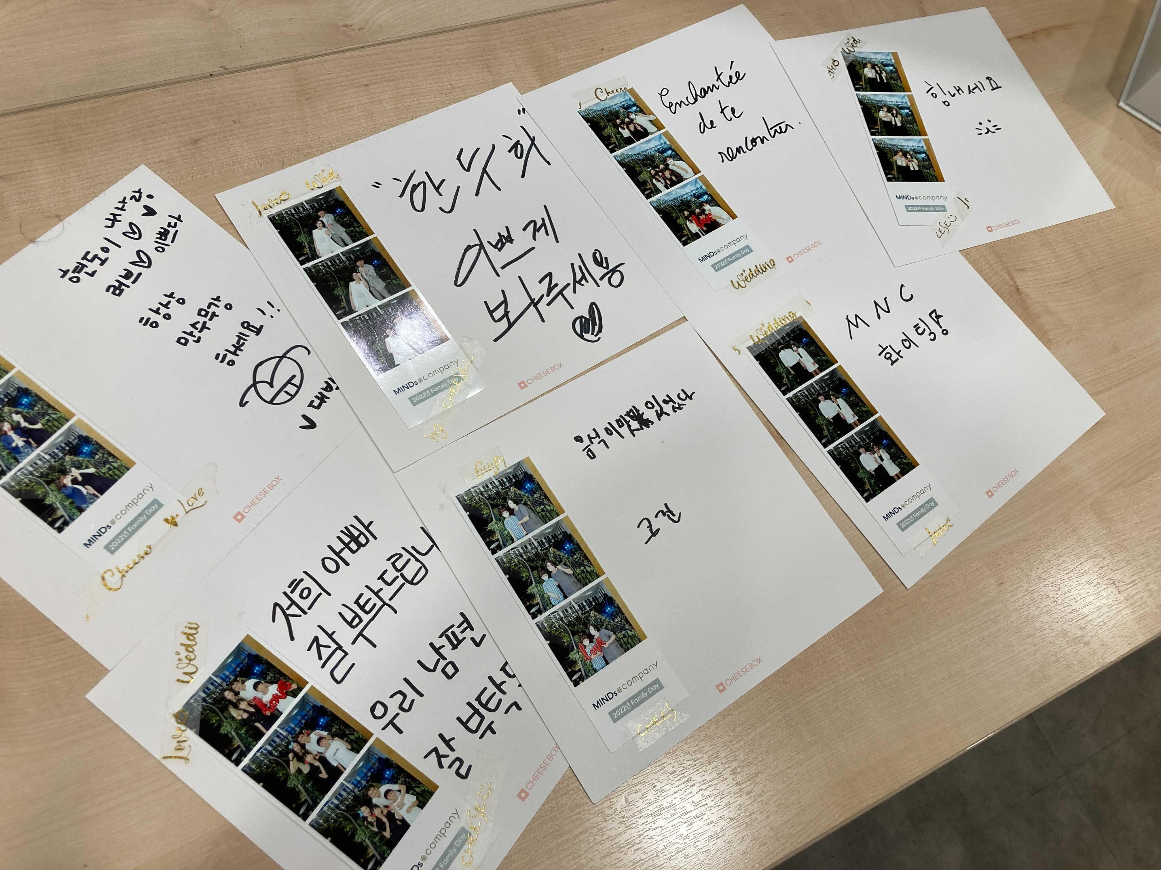 사진을 찍고 나서는 회사에 바라는 점과 응원의 방명록을 작성해주셨습니다.