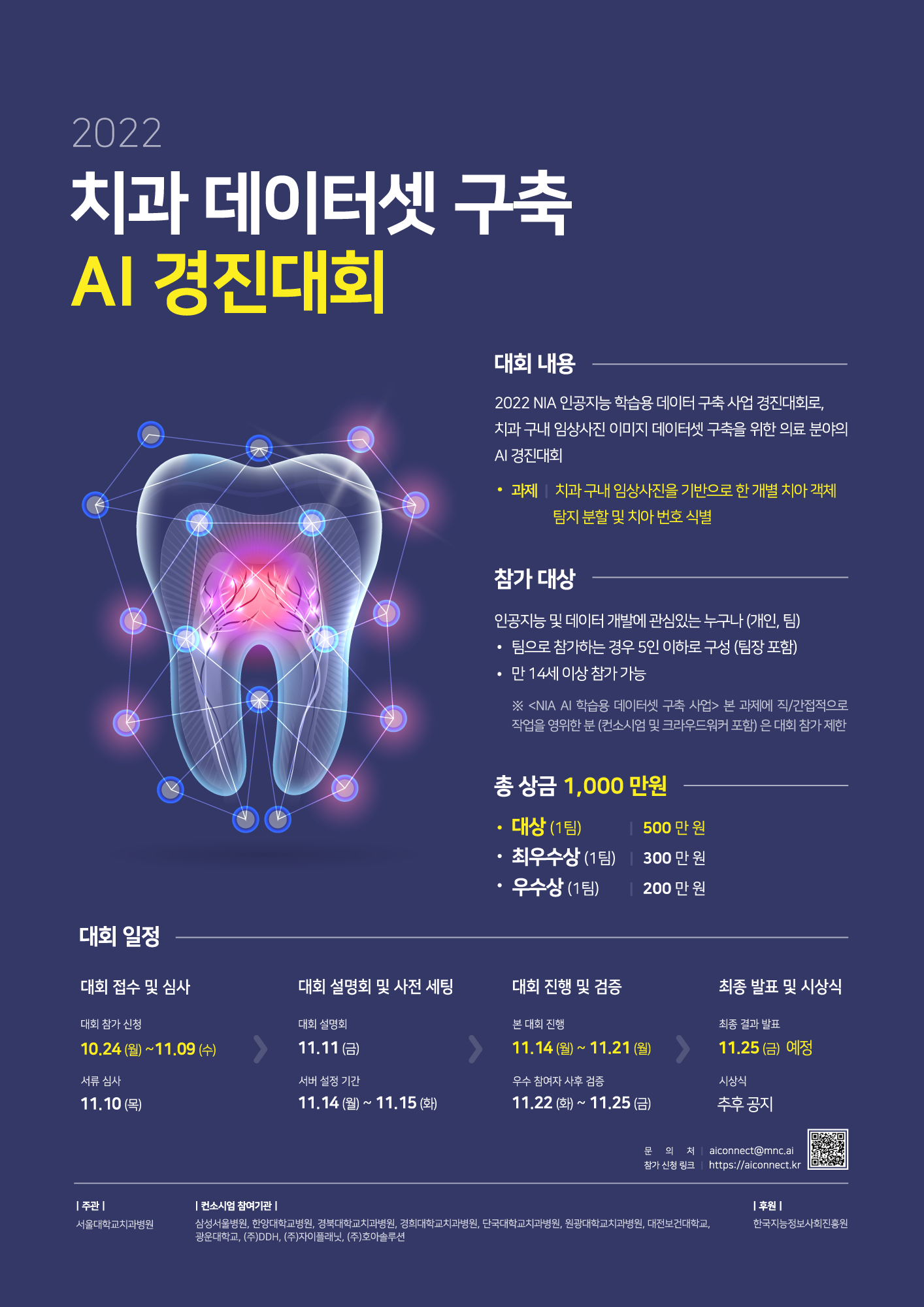 2022년 치과 데이터셋 구축 AI 경진대회에 참여해보세요!