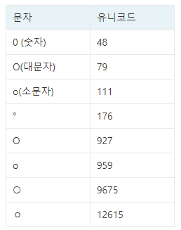 이 외에도 상당히 많은 동그란 모양의 특수문자들이 있었는데요, 영어 대문자와 소문자 제외하고는 모두 숫자 0으로 대체하였습니다.