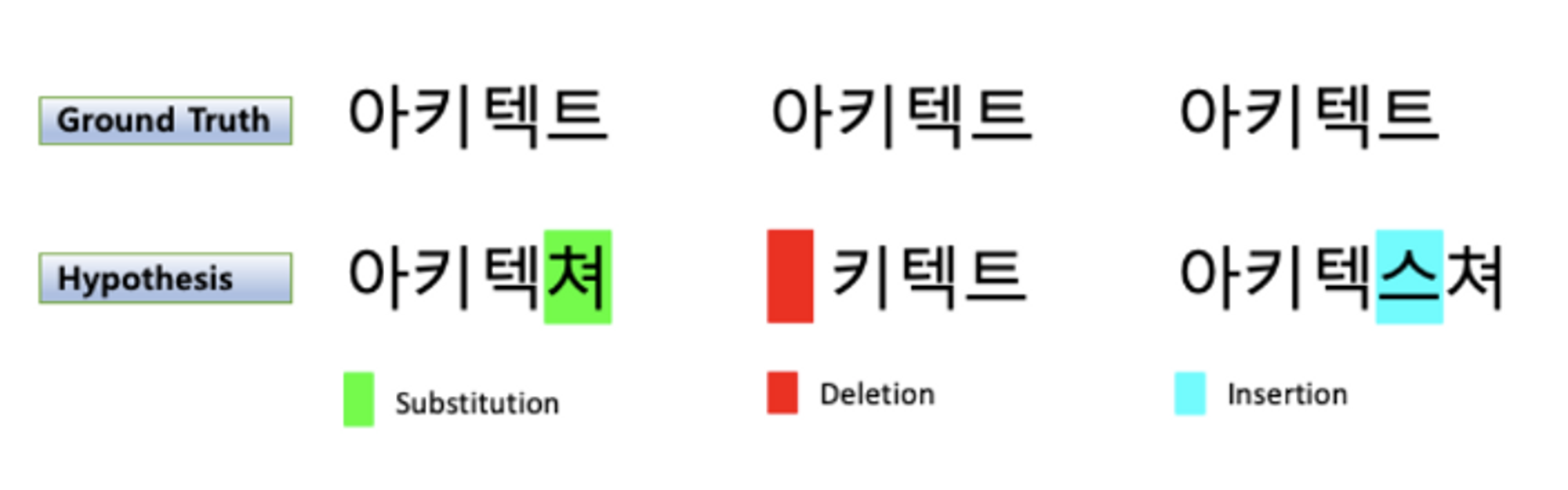 참고) WER은 CER과 비슷하지만 음절 대신 단어에 대해 오류를 확인합니다.
