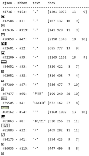 또한 bbox 종횡비, 문자길이 대비 bbox 종횡비등을 기준으로 봤을 때 여러 줄로 이루어져 있거나 글자가 세로로 된 경우가 있어서 역시 모델 학습에는 제외하였습니다.
