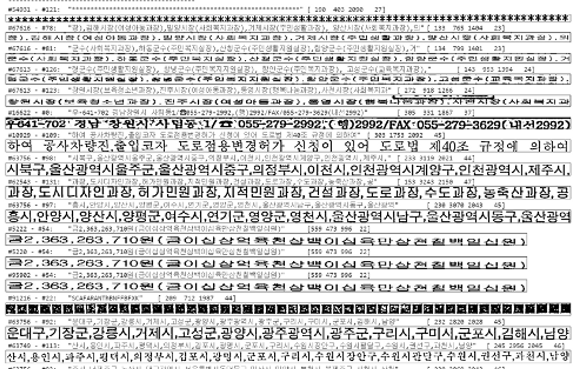 AiHub 공공행정문서 ocr 데이터를 활용하였습니다. 900,000장의 문서 이미지에 포함된 25,000,000 단어 로 구성되어 있는데 이 중 30% 정도를 사용하였습니다.