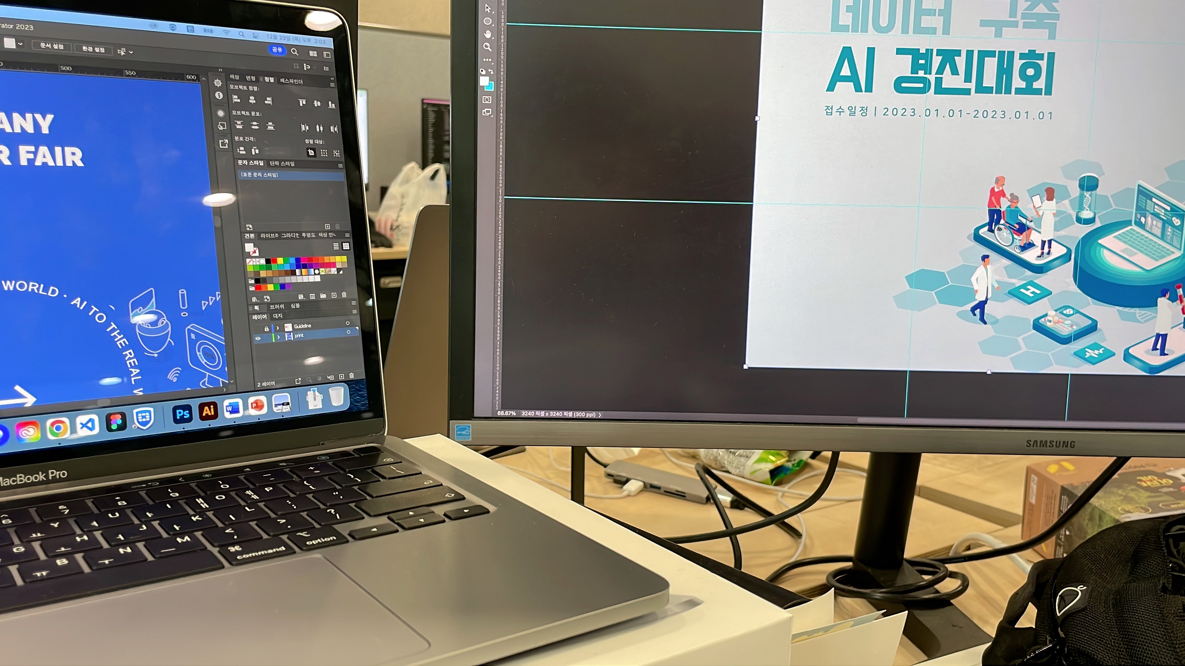 저는 늦여름에 AI CONNECT의 UX/UI 웹 디자인 및 퍼블리싱 직무로 입사했는데요, 2022년의 마지막까지 3-4개월의 기간 동안 포스터 등의 2D 인쇄물 작업부터 피그마를 활용한 UX/UI 웹 디자인, CSS 퍼블리싱 업무까지 다양한 경험을 할 수 있었습니다.