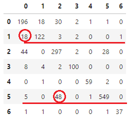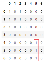 위 행렬을 통해 1번 아이템을 클릭한 유저는 1, 0번 아이템을 주로 장바구니에 담았고, 5번 아이템을 클릭한 유저는 5, 2번 아이템을 주로 장바구니에 담는 것을 파악할 수 있습니다.