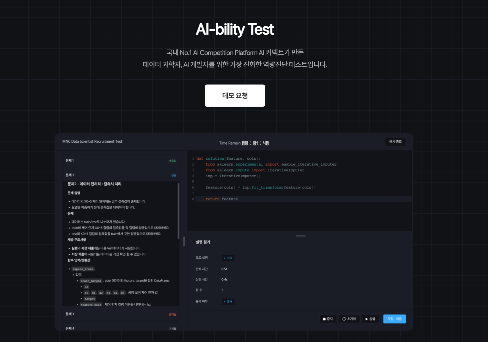AI-Bility Test는 이름에서부터 알 수 있듯, AI 전문 역량을 확인하기 위한 AI 인재 전문 코딩테스트인데요.
