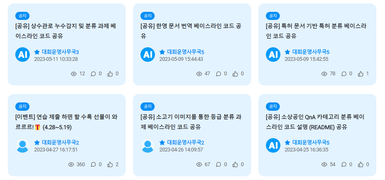 해당 대회에 무려 600명이 넘는 참가자가 몰리고, 이들이 다양한 의견을 커뮤니티 게시판에 남기면서 AI CONNECT가 커뮤니티로서 활성화될 수 있는 기반이 마련됐습니다.