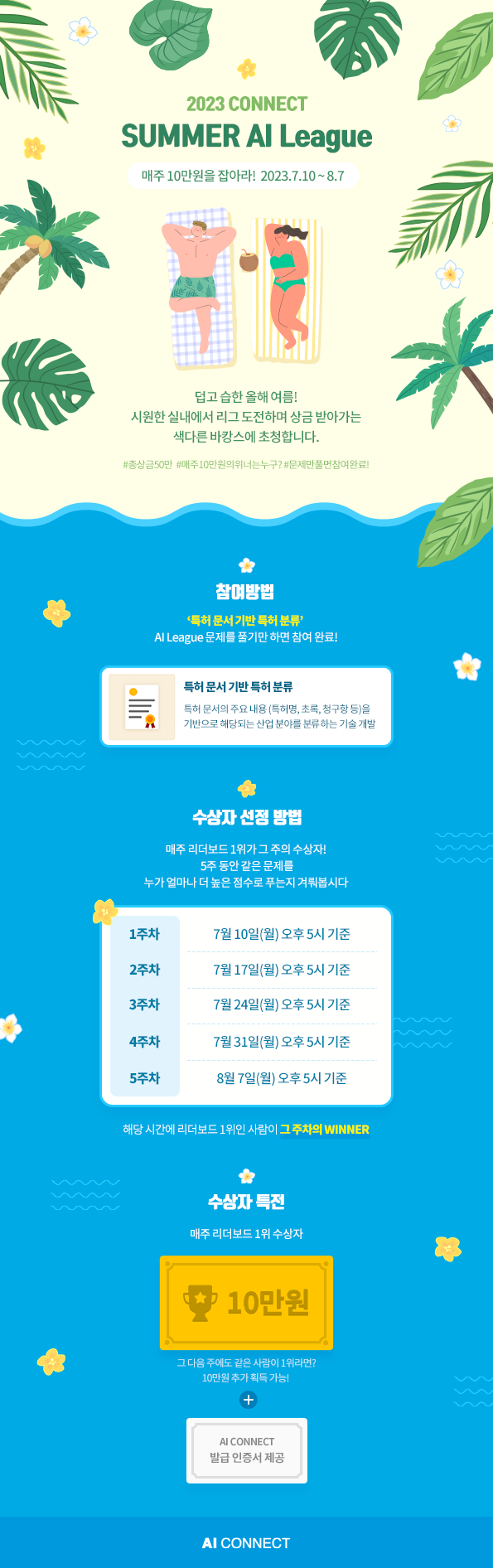 매주 10만원 상금 받자! SUMMER AI 리그 안내🌴 (6.28~8.7, 5주간!)