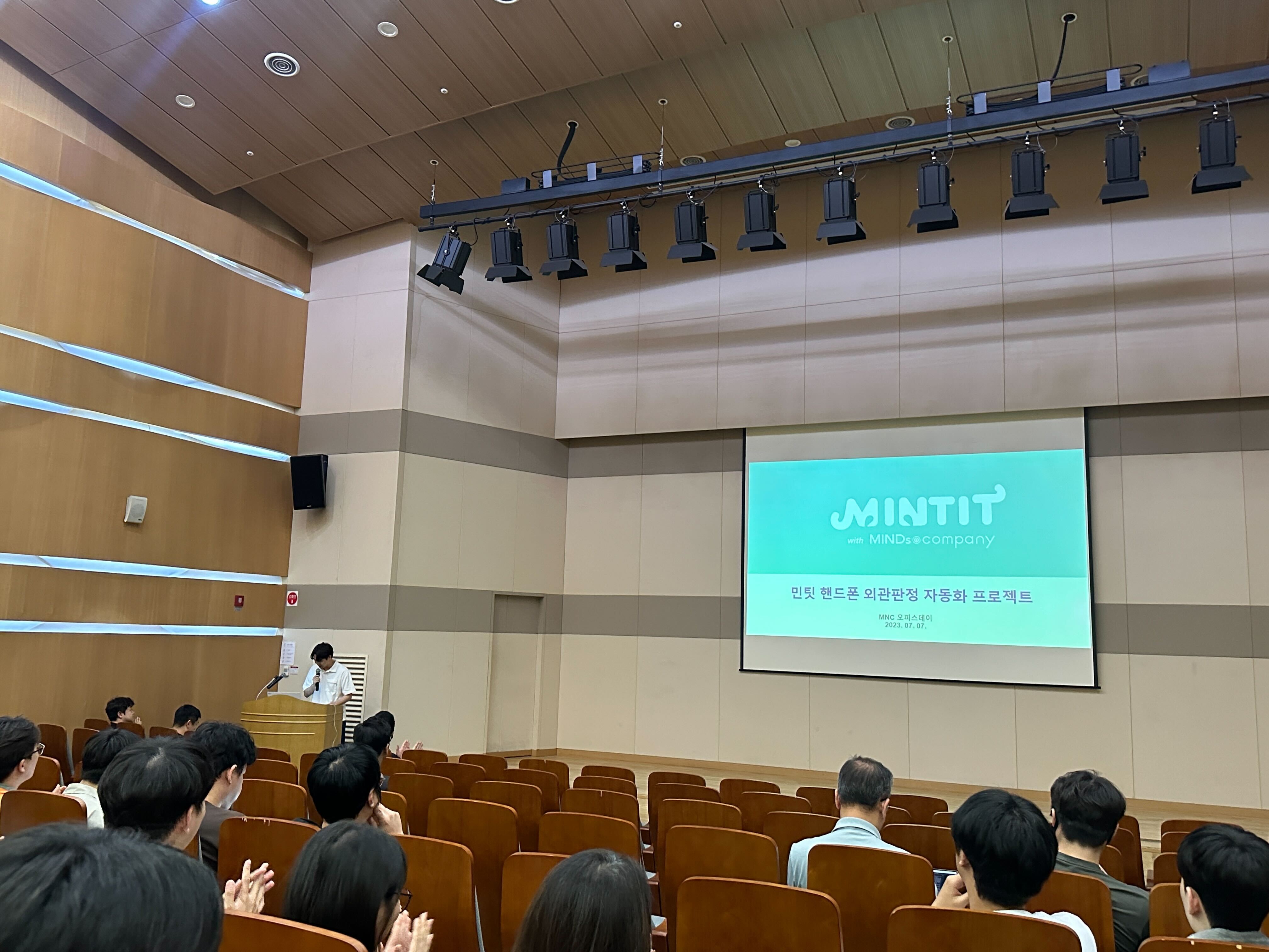 첫 순서는 MNC의 CV 기술이 집대성된 프로젝트인 민팃 프로젝트를 담당하고 계신 박영준 팀장님이 발표를 맡아주셨습니다. 민팃 프로젝트는 MNC가 2019년부터 꾸준히 진행해 온 장기 프로젝트인데요. 오랜 기간 함께해 온 고객사와의 프로젝트인 만큼 그 이해도도 많이 쌓였고, 해결해야 할 문제도 초기와는 다른 각도로 바라보며 새로운 솔루션을 제시해야겠죠.
