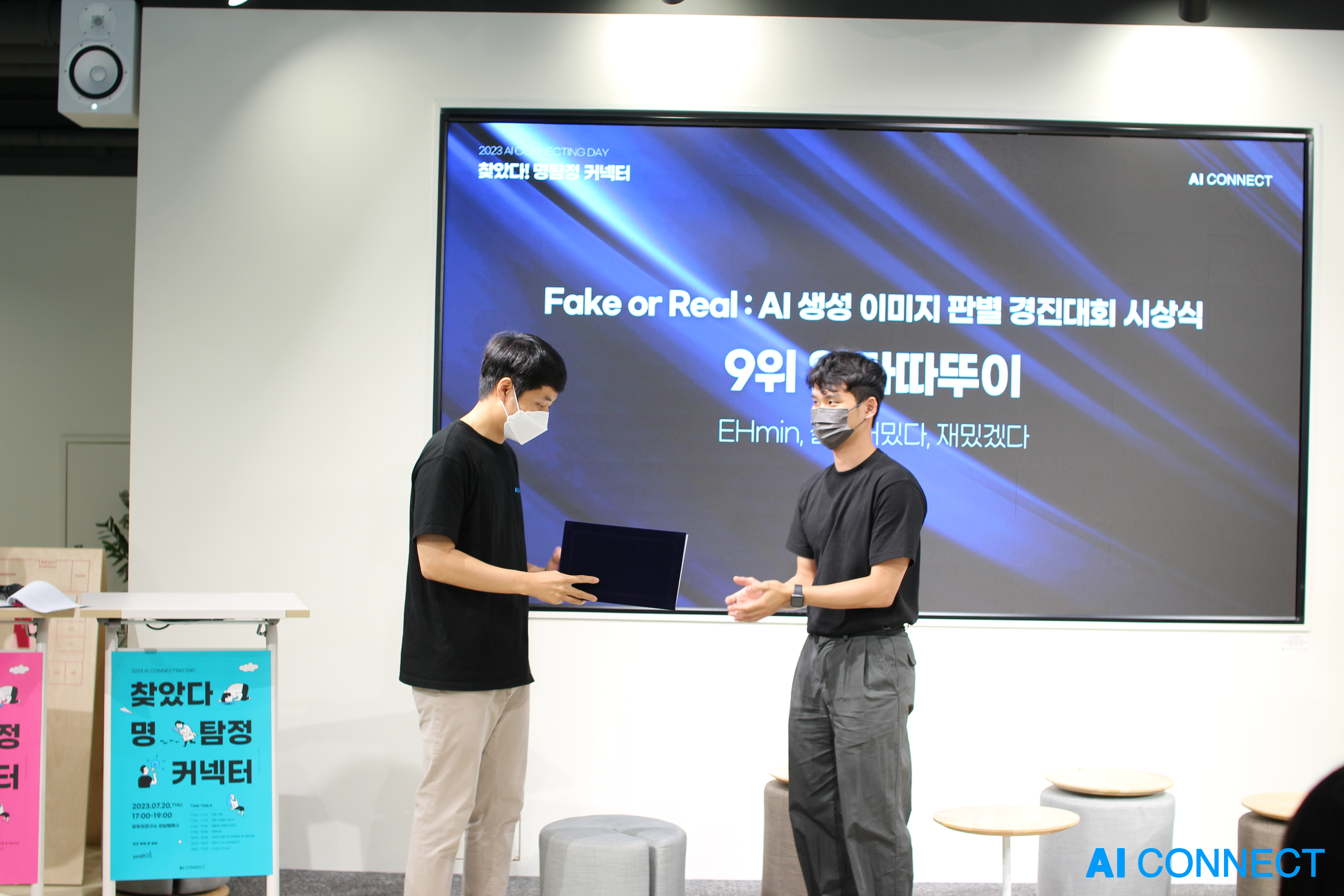 AI CONNECT에서는 지난 6월 생성AI를 주제로 한 올해의 두 번째 경진대회, 'Fake or Real: AI 생성 이미지 판별 경진대회'가 열렸는데요. 7월 7일 수상자를 발표하고, 약 2주 후 이번 대회에 참여한 분들을 초청한 오프라인 행사 '2023 AI CONNECTING DAY - 찾았다! 명탐정 커넥터'가 7월 20일 목요일, 모두의연구소 강남캠퍼스에서 열렸습니다.