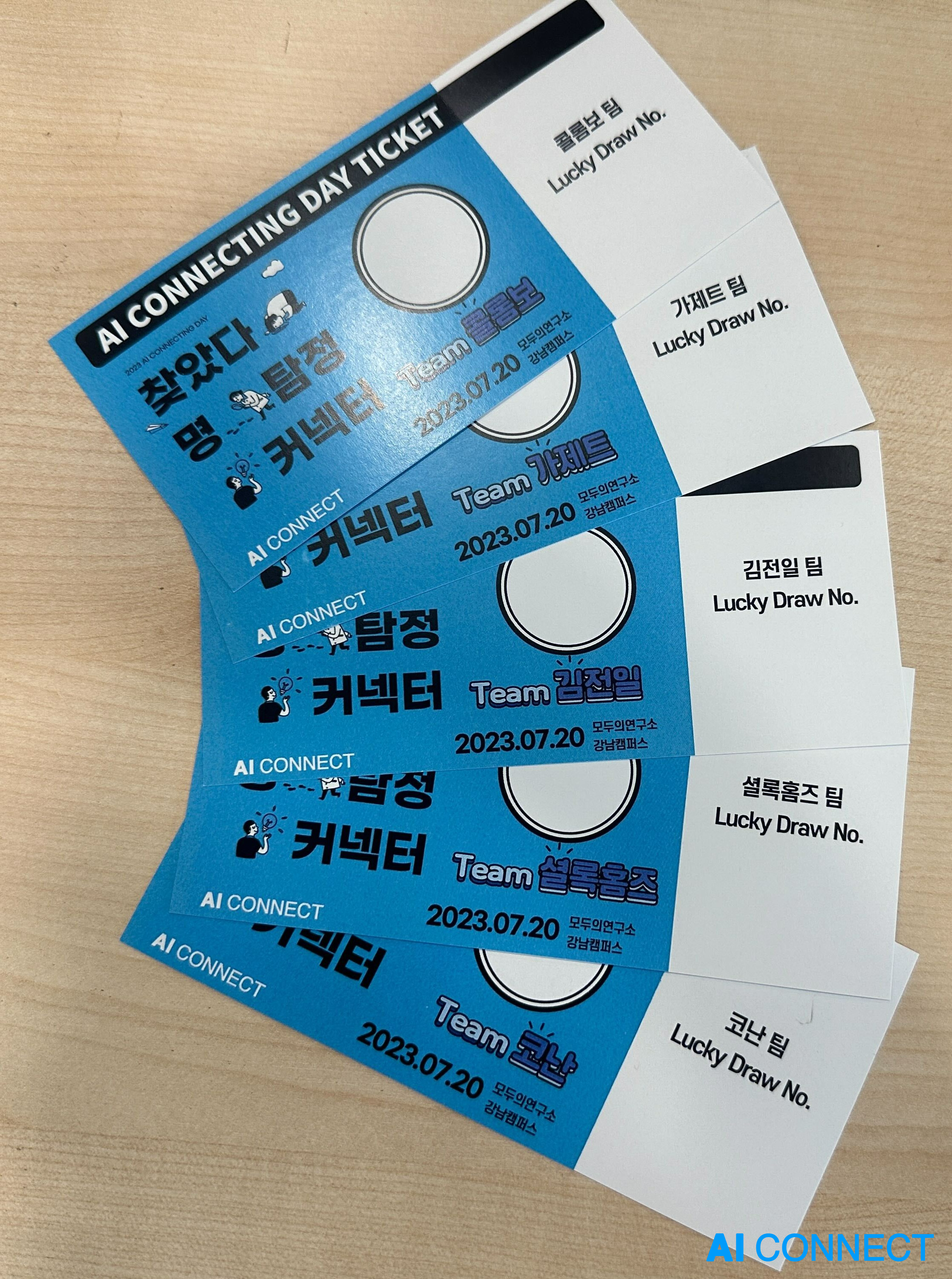 찾았다, 명탐정 커넥터! 이 곳이 바로 명탐정들이 모일 행사 장소인 모두의연구소입니다벽에 이번 행사 포스터도 붙여서 분위기를 한껏 더 살려보았어요행사 시작 한시간 전인 4시부터 한분 한분 AI CONNECTING DAY에 찾아오셨습니다음식이 없는 행사는 행사라 할 수 없죠! 더운 여름 발걸음해주신 분들 든든하게 시작하시라고 케이터링도 준비해두었습니다커넥트는 귀한 발걸음 해주신 분들을 배고프게 하는 그런 곳이 아닙니다! (쩌렁쩌렁)점점 자리가 채워지고 있네요!이번 대회 문제를 출제한 마인즈앤컴퍼니의 데이터 사이언티스트 박기돈 매니저가 대회 리뷰를 위해 무대로 나왔습니다이번 대회를 출제하면서 DS로서 어떤 점을 염두에 두었고, 또 어떤 방법을 쓰면서 데이터셋을 만들었는지 상세하게 설명 중입니다이번 대회의 구도는 명탐정 커넥터(대회참가자) vs 검은 조직(운영사무국) 이었다고 하네요!