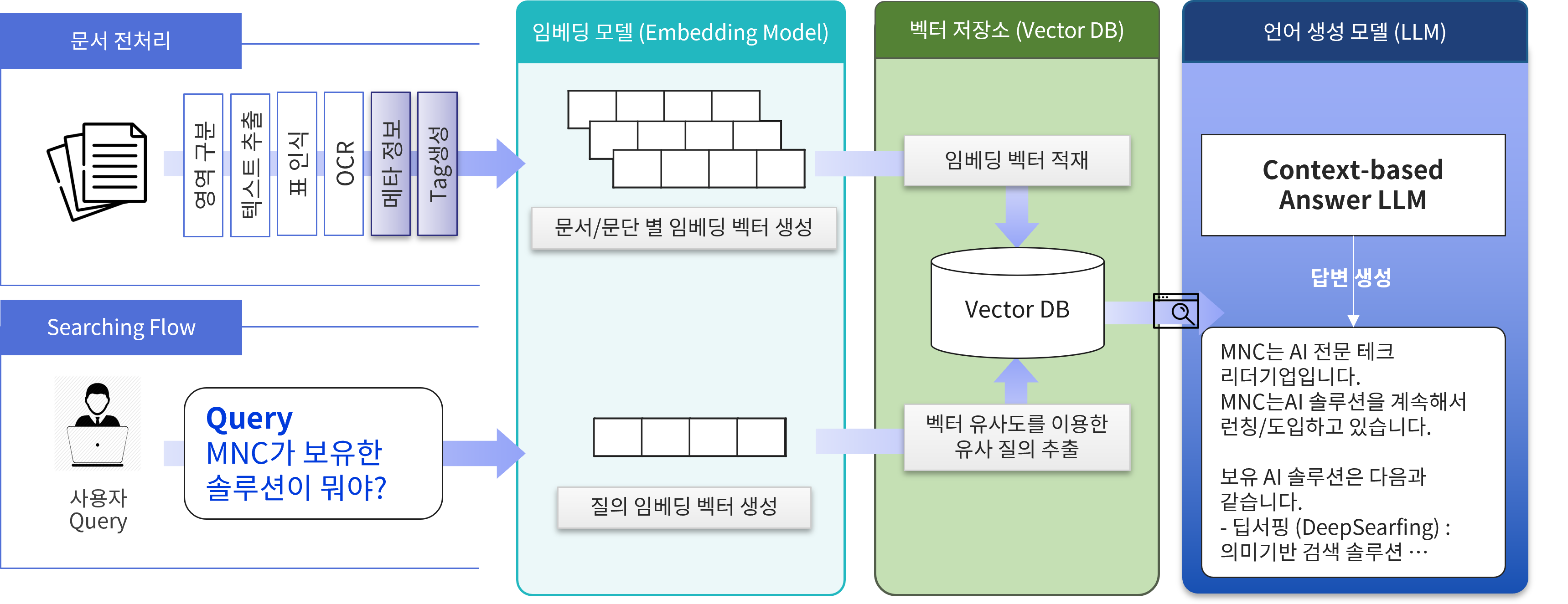 더불어, 전통적인 키워드 기반의 검색 방식은 사용자의 질문에 대한 정확한 답변을 찾아내는 데 한계가 있다 보니 사용자의 질문을 더 깊이 이해하고, 대용량 데이터에서 정확한 답변을 추출할 수 있는 기술의 필요성이 높아지고 있습니다.